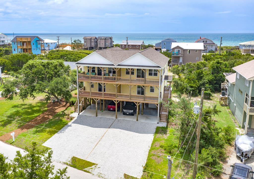 This island retreat features four bedrooms and three full bathrooms, accommodating up to nine guests. Among the many amenities provided are a convenient elevator, a fully equipped kitchen furnished with modern stainless steel appliances, a spacious living room for lounging with friends, a dining area, and an enclosed outdoor shower for washing off the sand after a delightful day at the beach. Everything you could want for a perfect vacation is here. Book your spot in the sand for this year and immerse yourself in the lifestyle of Topsail Island.