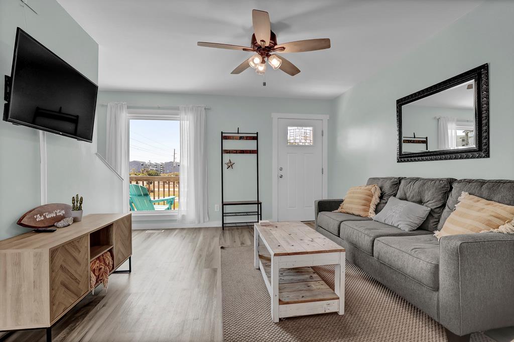 Welcome to 202 Bayview Drive—your perfect coastal getaway on the stunning North Topsail Beach. This beautiful second-row home features two inviting bedrooms and is ideally located right across from the renowned St. Regis Resort, placing you in the heart of a vibrant community filled with charming restaurants, lively bars, and, most importantly, easy access to the beach with two nearby access points. As you step inside, you're greeted by a cozy and clean living room, complete with a Queen sleeper sofa that seamlessly flows into the dining area and well-equipped kitchen. Enjoy memorable meals together or opt for take-out to savor on the sunlit deck. Feel the invigorating sea salt air and warm breeze as you grill outside or enjoy playful moments in the fenced yard, perfect for pets. Upstairs, the serene Queen bedroom boasts access to a top-floor deck with stunning ocean views, making it an ideal spot to unwind. The second bedroom features a Twin bed and a Twin trundle, perfect for accommodating children. A full bathroom is conveniently located in the hallway, while garage access comes with a washer/dryer and beach equipment for your convenience. Book your stay at 202 Bayview Drive today and create unforgettable memories in this coastal paradise!