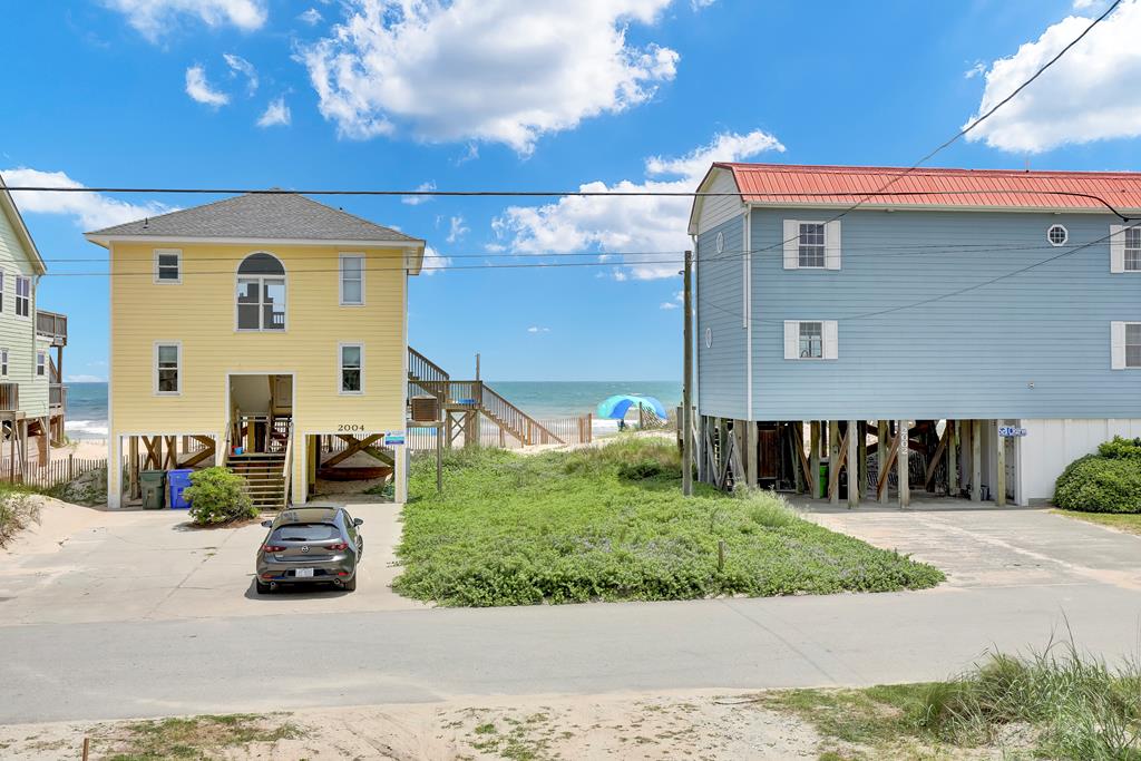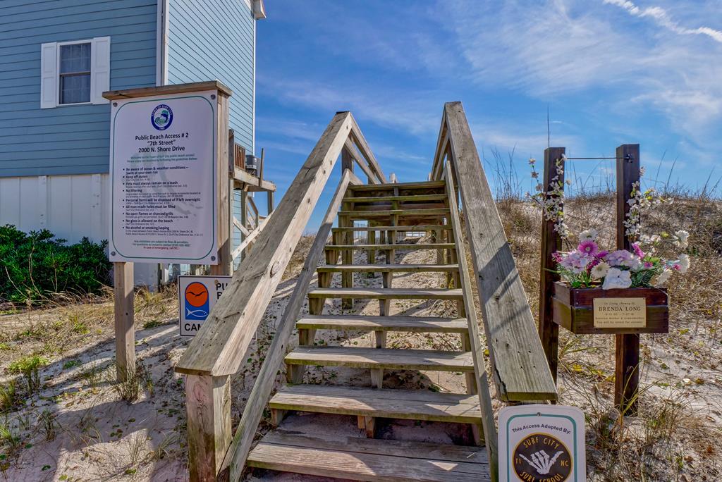 Welcome to this charming 3-bedroom, 2-bathroom 2nd row island bungalow appropriately named Sunbeams and Ocean Dreams! As soon as you pull into the driveway you will notice the oversized front deck with Adirondack chairs and an awning overlooking the ocean. Listen to the waves crash and watch the sunrise with a cup of coffee on your private deck each morning. Once inside you will be greeted with an abundance of natural light thanks to the unique windows in the great room. The vaulted ceilings are showcased by natural lumber beams. The great room features an open concept with generous living space and a fully equipped kitchen. The living area has ample seating for 6 adults. The living room also features a flat-screen smart TV with YouTube TV included for guest use. The kitchen has counter seating for 4 with bar stools for your convenience as well as a door to a second deck off the back of the home. This back deck is the perfect place to watch the sunset after a day on the beach. The dedicated dining area just off the kitchen seats 6 adults comfortably and is a great place for a game of cards, puzzles, or family board games. Just off the living area, you will find the secluded master bedroom and one full bath separated by a barn door. The master bedroom has a queen-sized bed and flat-screen TV. On the opposite side of the home, you will find the other two bedrooms featuring another queen-sized bed and a twin over twin bunk (w/ twin trundle) respectively. There is another full bath on this side of the home. Each bedroom has windows for natural light and ample storage for your vacation must-haves! This home also offers includes a stackable washer dryer combo. Just steps from the large gravel driveway is a public beach access available for your use. This adorable bungalow is located just minutes away from the center of Surf City, and a convenient drive to Wilmington and Jacksonville.